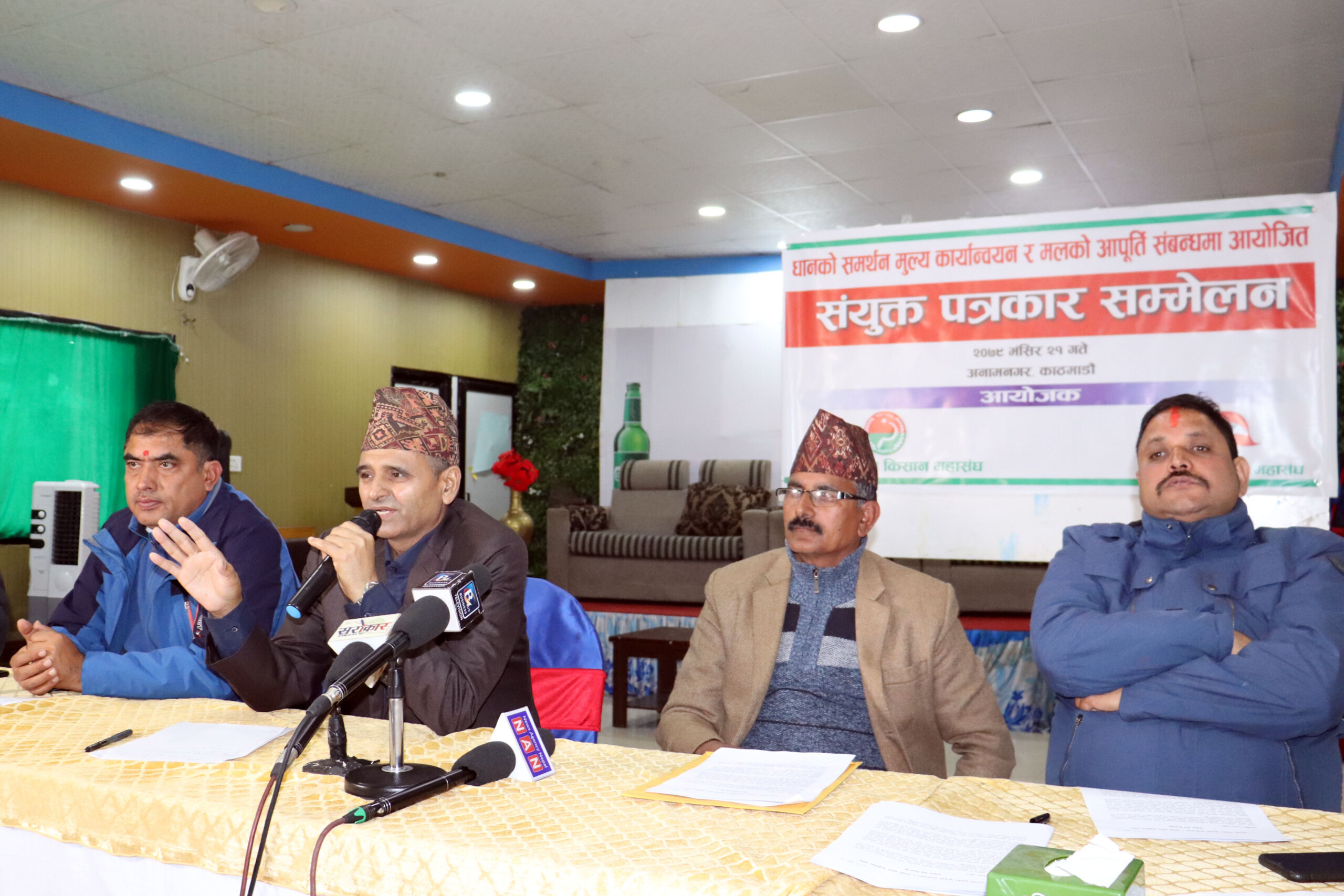 अखिल नेपाल किसान महासङ्घका अध्यक्ष डा.प्रेम दङ्गालले अविलम्ब किसानबाट धान खरिद प्रक्रिया अगाडि बढाउन माग गर्दै हिउँदे खेतीका लागि आवश्यक मलको व्यवस्था तत्काल गर्न नेपाल सरकारसँग माग गरे । उनले सरकारले माग पूरा नगरे देशभरका किसान परिचालन गर्न बाध्य हुने चेतावनी दिए ।