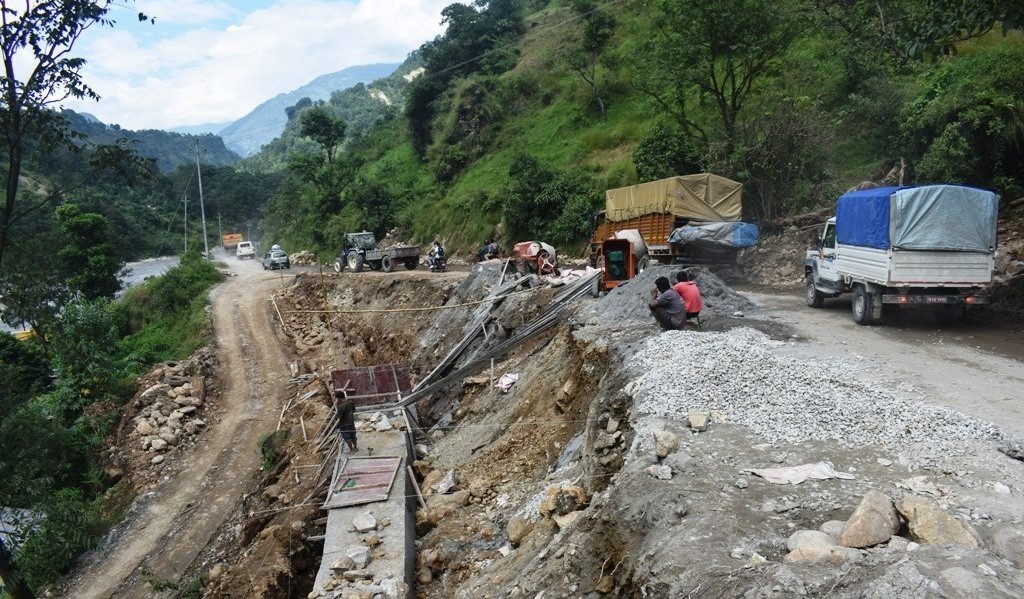 ओमकारेश्वरका सञ्चालक अमृत दाहालले सडक निर्माणका लागि आवश्यक पर्ने ढुङ्गा, गिट्टी, बालुवा र रोडा नपाएपछि काम रोक्नुपरेको बताए । ‘तिहार अघिसम्म तीव्र गतिमा काम गरेका थियौँ । छ किलोमिटर सडक विस्तार, नाली र पर्खाल सकेर ग्राभेल गर्ने तयारी छ,’ उनले भने ‘ठेक्का सम्झौताअनुसार सडक निर्माणका लागि आवश्यक नदीजन्य कच्चा पदार्थको स्रोत कालीगण्डकी हो ।
