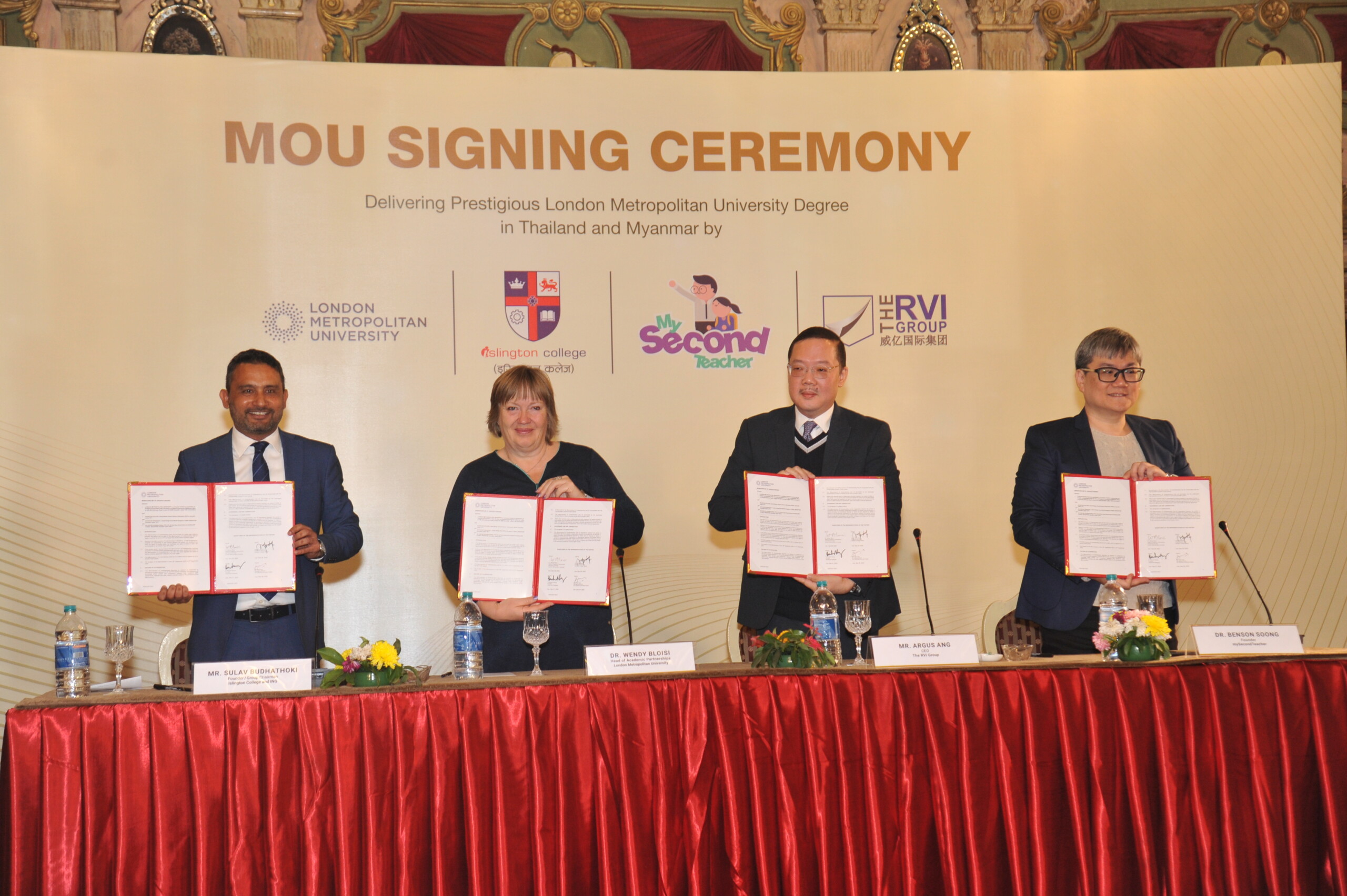 काठमाडौं । इस्लिङट्न कलेज लण्डन मेट्रोपोलिटन विश्वविद्यालय, माइ सेकेण्ड टिचर र आरभिआई ग्रुप बीचमा लण्डन मेट्रोपोलिटन विश्वविद्यालयको बिए (अनर्स) बिजनेस प्रशासन कोर्ष अध्ययन गर्ने सम्बन्धि सम्झौतामा हस्ताक्षर भएको छ ।