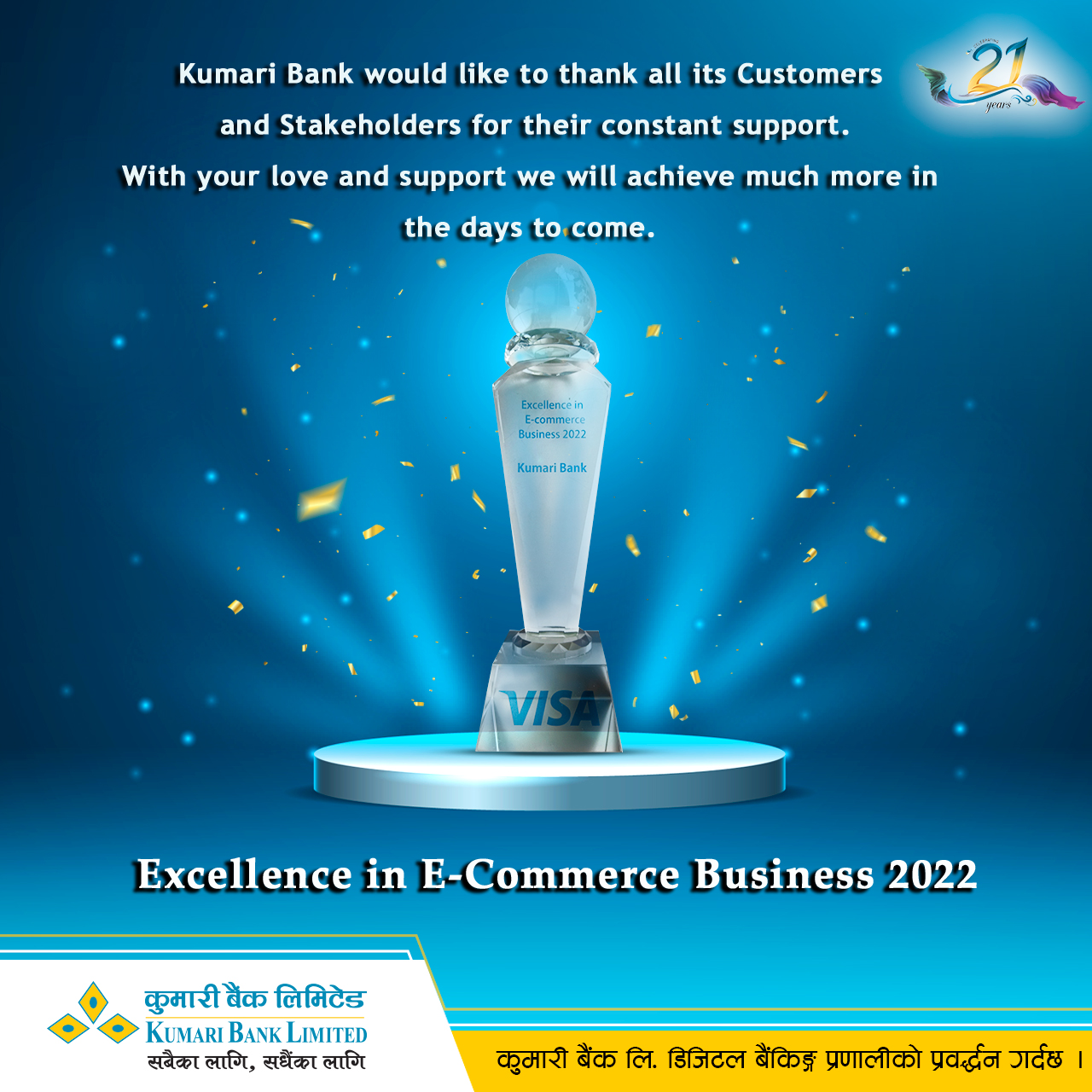 सोही अनुसारको लिर्डस कन्क्लेभ सम्मेलनमा भिसा इन्टरनेशनलद्धारा कुमारी बैंक लिमिटेडलाई ‘एक्सिलेन्स इन इ कर्मश बिजनेश २०२२’ अवार्डले सम्मानित गरिएको हो । यो अवार्ड कुमारी बैंकलाई अभिनव उत्पादन र कार्ड भुक्तानी उद्योगमा उच्चतम ईकमर्स व्यवसायको मात्रा हासिल गरेकोमा प्रदान गरिएको छ ।