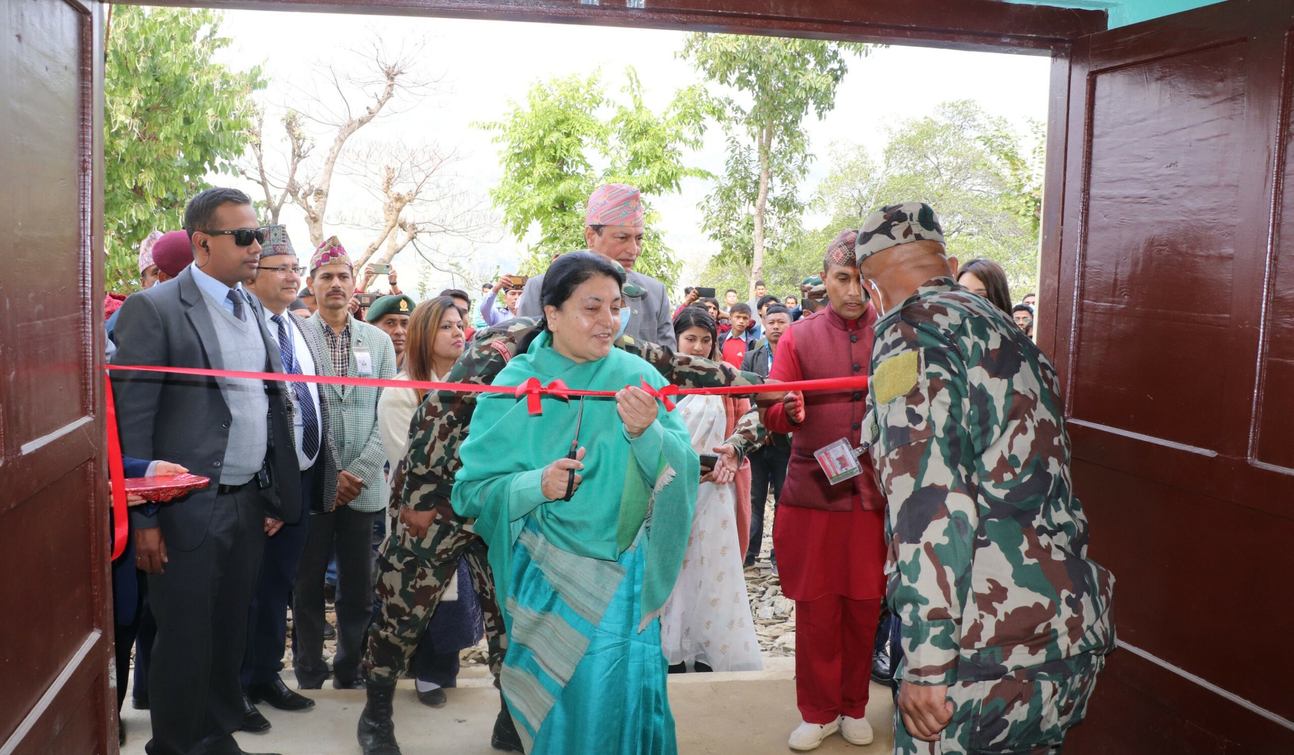 भोजपुर । राष्ट्रपति विद्यादेवी भण्डारीले श्रीराम मिथिला शिक्षालयको उद्घाटन गरेकी छन् । राष्ट्रपति भण्डारीले जन्मगाउँ रामप्रसाद राई गाउँपालिका–५ मानेभञ्याङ आमबोटेमा निर्माण भएको ‘श्रीराम मिथिला बहुप्राविधिक शिक्षालय’ उद्घाटन गरेकी हुन् । उद्घाटन कार्यक्रमलाई सम्बोधन गर्दै राष्ट्रपति भण्डारीले शिक्षालयको स्थापनाले स्थानीयबासीलाई प्राविधिक शिक्षा लिन सहज हुने विश्वास व्यक्त गरिन् ।