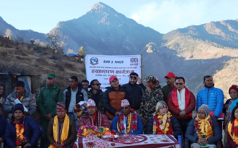 सडक निर्माण सन् २०१८ अक्टोबरदेखि काम सुरु भएको थियो । निर्माण सकिएपछि बेलायत सरकारले बुधबार कर्णाली प्रदेश सरकारलाई हस्तान्तरण गरेको छ । हस्तान्तरण कार्यक्रममा कर्णालीका मुख्यमन्त्री जीवनबहादुर शाहीले विकासको पहिलो आधार सडक भएको बताए ।
