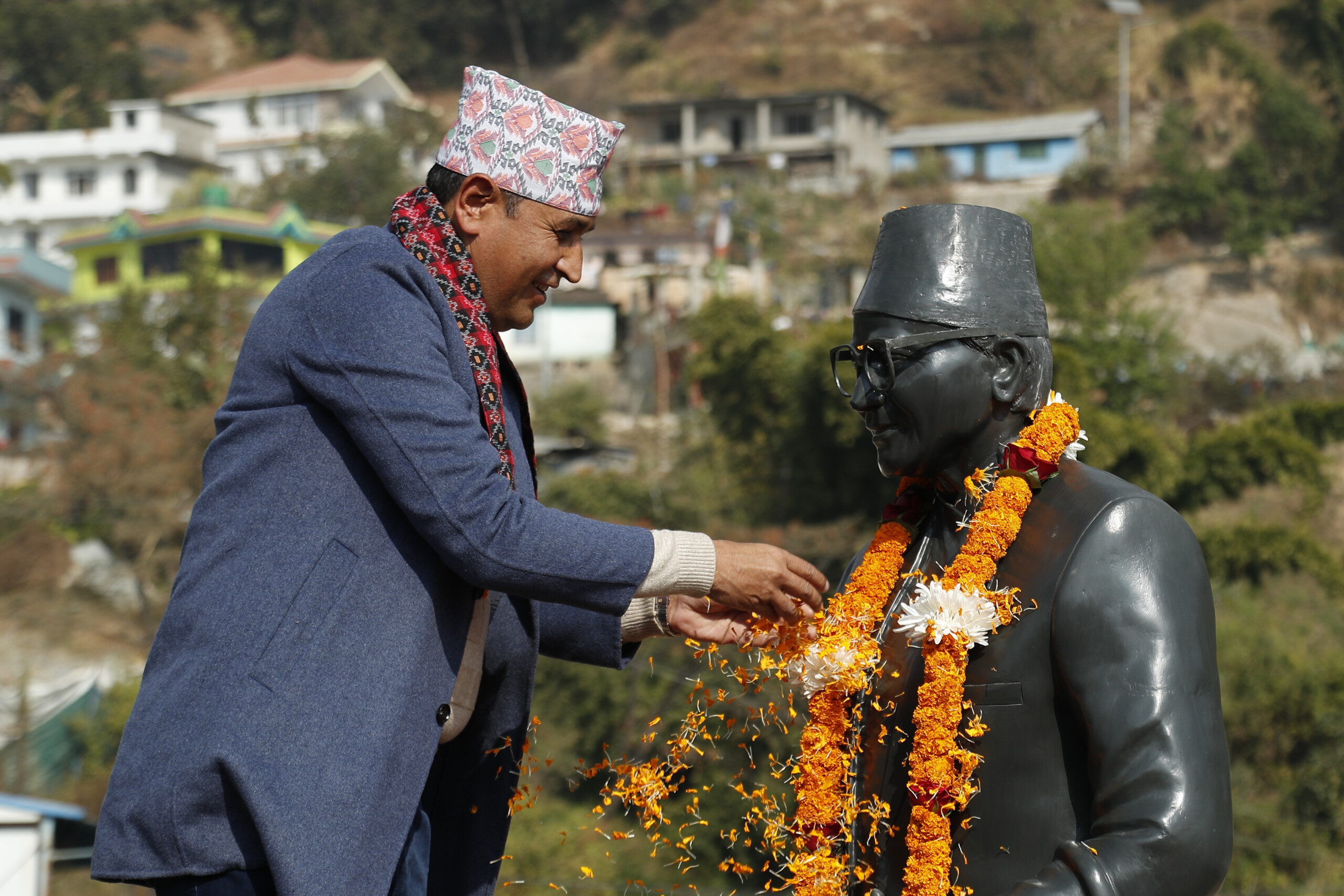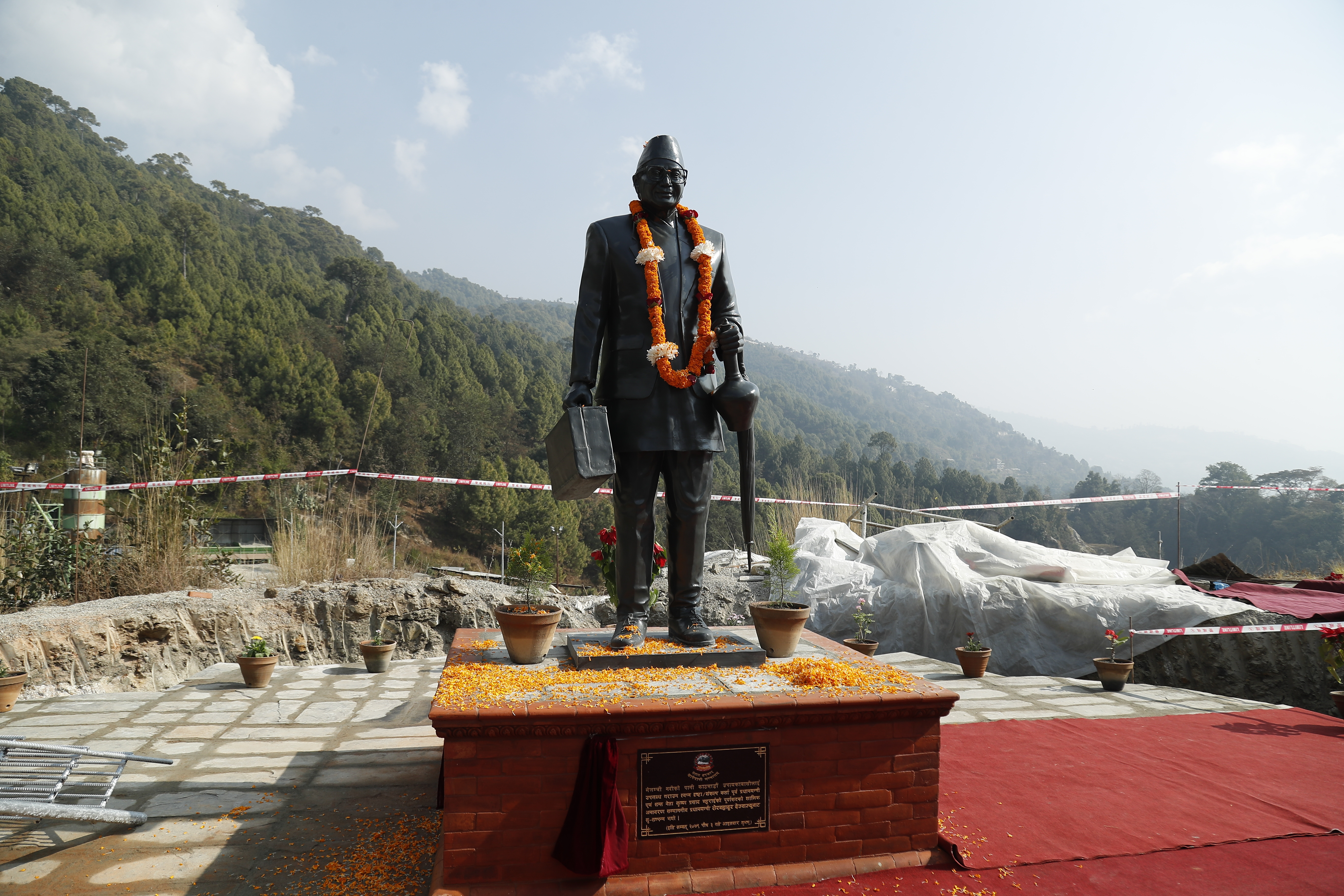 सुन्दरीजल पानी प्रसोधन केन्द्र परिसरमा खानेपानी मन्त्री उमाकान्त चौधरी लगायतको उपस्थितीमा देउवाले भट्टराईको शालिकमा फूल तथा माला पनि अर्पण गरेका थिए ।