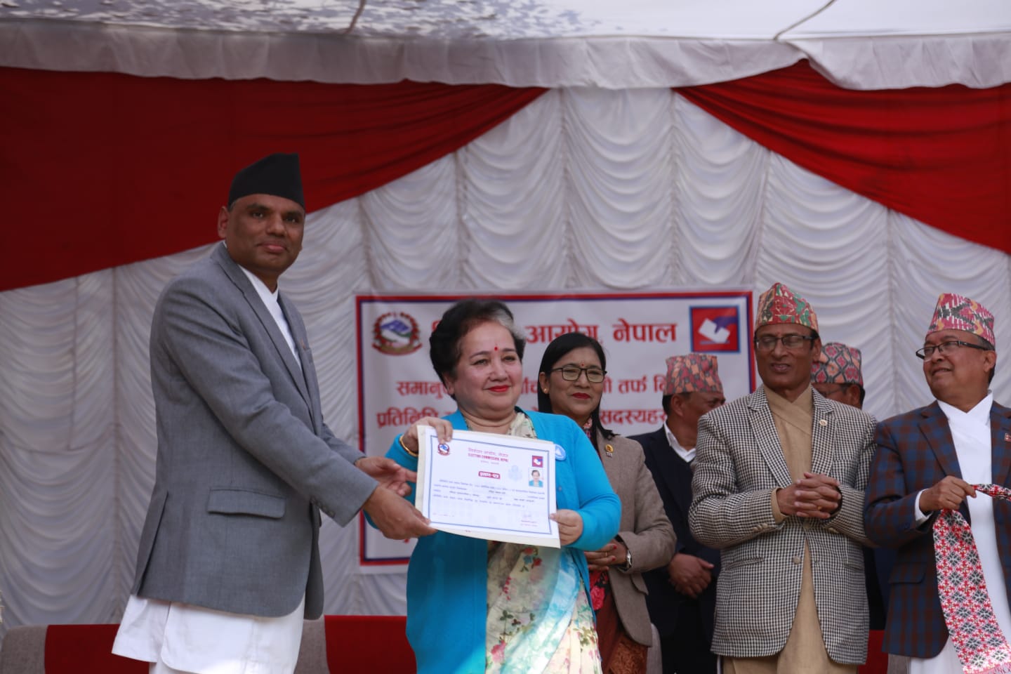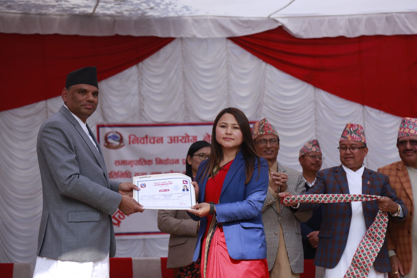 काठमाडौं । निर्वाचन आयोगले मंसिर ४ गते सम्पन्न प्रतिनिधिसभा र प्रदेशसभा निर्वाचन अन्तर्गत समानुपातिकतर्फबाट विजयी भएका सांसदहरुलाई प्रमाणपत्र वितरण गरेको छ।