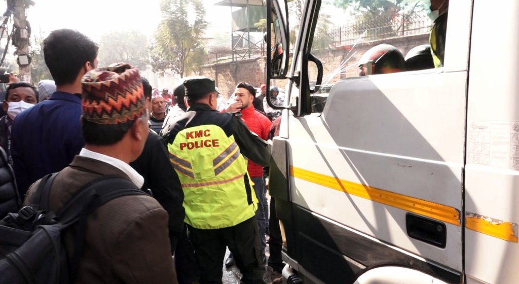 काठमाडौं । काठमाडौं महानगरपालिकाले निजी जग्गामा राखेका सवारीसाधन उठाएर ज्यादती गरेको छ । आईतवार महानगरपालिकाले काठमाडौंको अनामनगर क्षेत्रमा निजी जग्गामा राखेका सवारीसाधन उठाएर ज्यादती गरेको हो । निजी जग्गा क्षेत्रभित्र राखेका दुई पाङ्ग्रे सवारीसाधन महानगर प्रहरीले उठाएपछि यतिबेला अनामनगर क्षेत्र तनावग्रस्त बनेको छ । महानगरपालिकाले गरेको ज्यादतीको बिरुद्धमा सवारीसाधन चालकहरु बिरोधमा उत्रिएका थिए ।