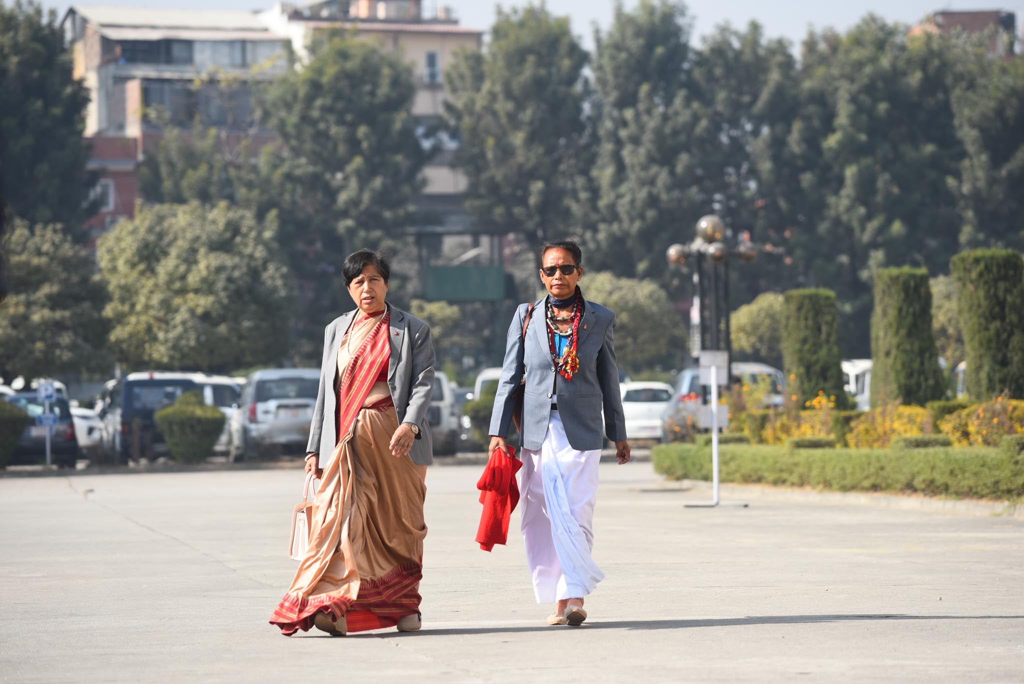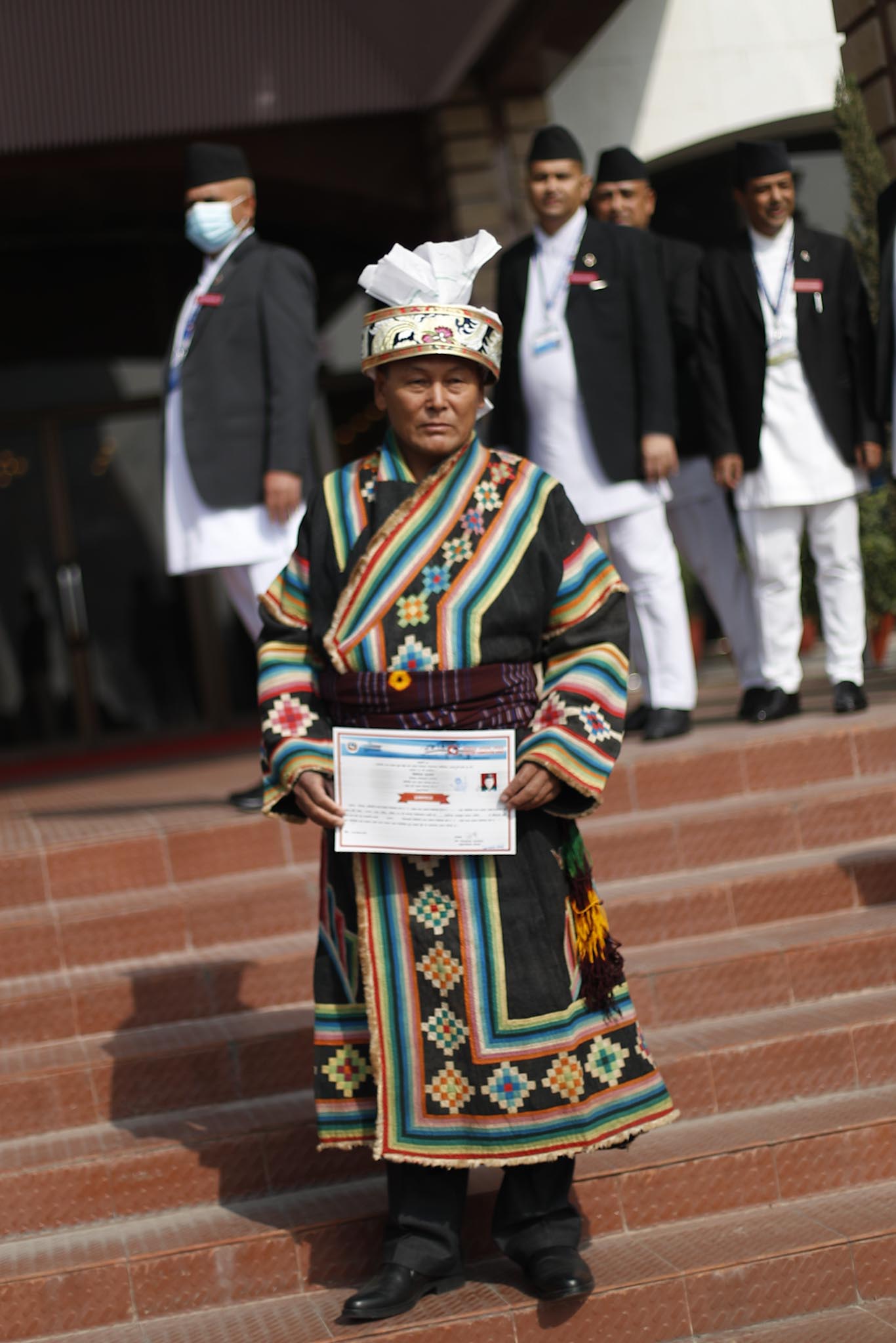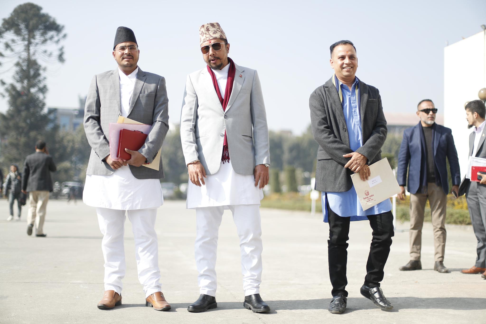 शपथ ग्रहणका लागि सांसदहरु राष्ट्रिय पोषाकमा संसद भवन पुगेका थिए । कतिपय सांसदहरु भने आफ्नो पहिचान अनुसारको पोषाक लगाएर संसद भवन पुगेका थिए ।
