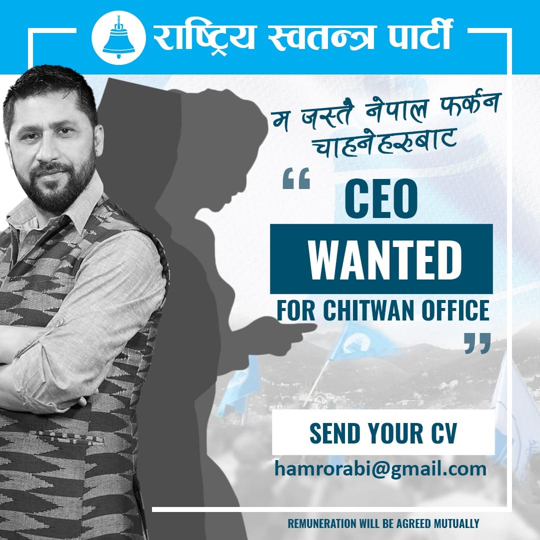 ‘हाम्रो चितवन कार्यालयका लागि प्रमुख कार्यकारी अधिकृत सीईओ भएर विकास, सुशासन, व्यवस्थापनलगायतका सम्पूर्ण कार्यभार सम्हाल्न सक्ने मान्छेलाई अति आकर्षक तलब तथा सुविधासहित म एयरपोर्टमा स्वागत गर्न तयार छु ।’ उनले भनेका छन् ।