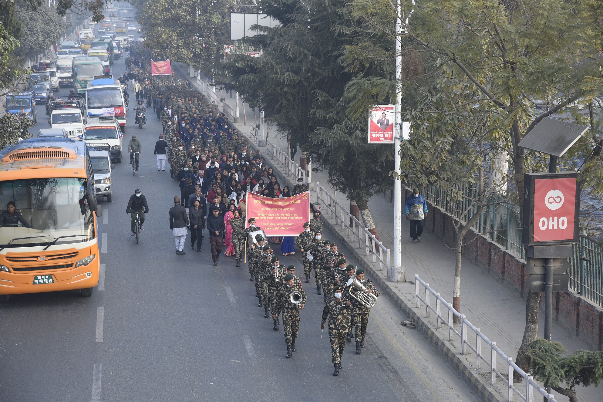 काठमाडौं । नेशनल क्याडेट क्रप्स (एन.सी.सी) आल्मुनाई एशोसिएसनले प्रभातफेरी कार्यक्रम सञ्चालन गरेको छ । एशोसिएसनले पाँचौ वार्षिकोत्सवको अवसरमा आज शनिवार राष्ट्रिय सेवा दलद्वारा काठमाडौं जिल्ला (जगन्नाथदेवल–भोटाहिटी–रत्नपार्क–भद्रकाली–माईतिघर मण्डलाहुँदै जंगी अड्डासम्म) मा प्रभातफेरी कार्यक्रम आयोजना गरेको हो ।