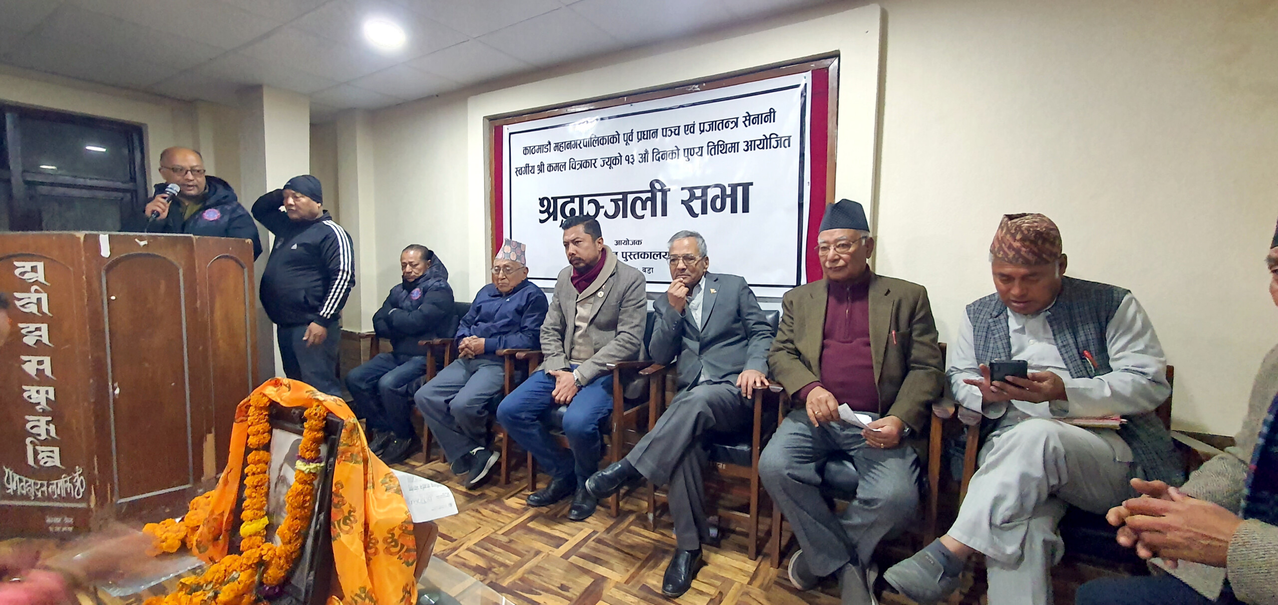 काठमाडौं । प्रजातन्त्र सेनानी स्व. कमल चित्रकारको १३ औँ दिनको पुण्य तिथिका अवसरमा ह्वील चेयर र स्टेचर हस्तान्तरण गरिएको छ । तेह्रौं पुण्य तिथीका अबसरमा आयोजित श्रद्धाञ्जली सभाको अवसरमा ह्वील चियर र स्टेचर हस्तान्तरण गरिएको हो ।