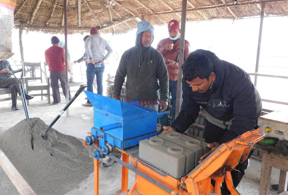 महेन्द्रनगर । कञ्चनपुरको लालझाडी गाउँपालिका–६ चान्देवका ४० वर्षीय साधुराम चौधरीले दुई वर्ष भारतको राजधानी नयाँ दिल्लीमा मजदुरी गरे । कोरोना महामारीसँगै स्वदेश फर्किएका उनी हाल गाउँमै अरु युवासित मिलेर ‘चान्देव एकीकृत इन्टरलक इँटा तथा ब्लक उद्योग’ सञ्चालन गरिरहेका छन् । सिमेन्टको प्रयोग गरी बनाइले आधुनिक एवं भूकम्प प्रतिरोधी इँटा उद्योग समूहमा सञ्चालन गरिरहेका चौधरीले उद्योग स्थापनाको छोटो समयमै मनग्य आम्दानी गरिरहेका छन् । “घरपरिवार छाडेर विदेशमा मजदुरी गर्नुभन्दा गाउँमै केही गरौँ भनेर भारतबाट फर्किएर यसमा संलग्न भए”, उनले भने, “हातमा सीप भए गाउँमै मेहनत गरेर आम्दानी गर्न सकिँदोरहेछ ।”