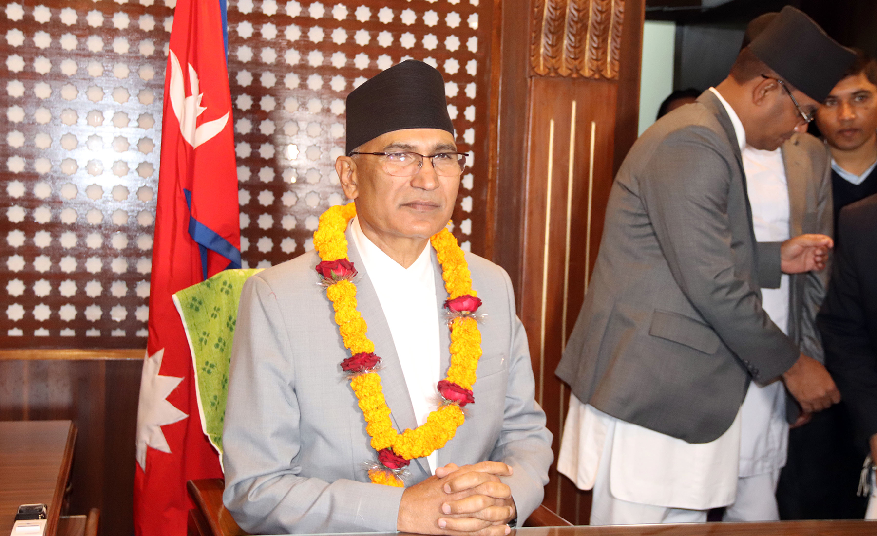 नवनियुक्त उपप्रधानमन्त्री एवं अर्थमन्त्री विष्णुप्रसाद पौडेल सोमबार अर्थमन्त्रालयमा पदभार ग्रहण गर्नुहुँदै । तस्बिर : हरिराम भेटुवाल/ रासस