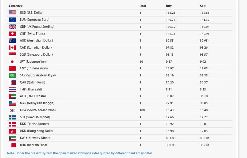 नेपाल राष्ट्र बैंकले बिहीबारका लागि तोकेको विदेशी मुद्राको विनिमयदरअनुसार अमेरिकी डलर एकको खरिददर १३२ रुपैयाँ २८ पैसा र बिक्रीदर १३२ रुपैयाँ ८८ पैसा रहेको छ ।