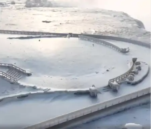 नियाग्रा फल्सको पानी हिउँमा परिणत भएको छ । तापक्रम शून्य डिग्रीभन्दा तल गएपछि नियाग्रा फल्सको पानी हिउँमा परिणत भएको हो । चर्को चिसोमा पनि पर्यटक त्यहाँ पुगेर तस्बिर सेयर गरिरहेका छन् ।