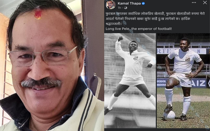 ‘फुटबल जगतका सर्वाधिक लोकप्रिय खेलाडी, फुटबल खेलाडीको रुपमा मेरो आदर्ष पेलेको निधनको खबर सुनेर सारै दु:ख लागेको छ । हार्दिक श्रद्धाञ्जली।’ उनको फेसबुकमा लेखेका छन् ।