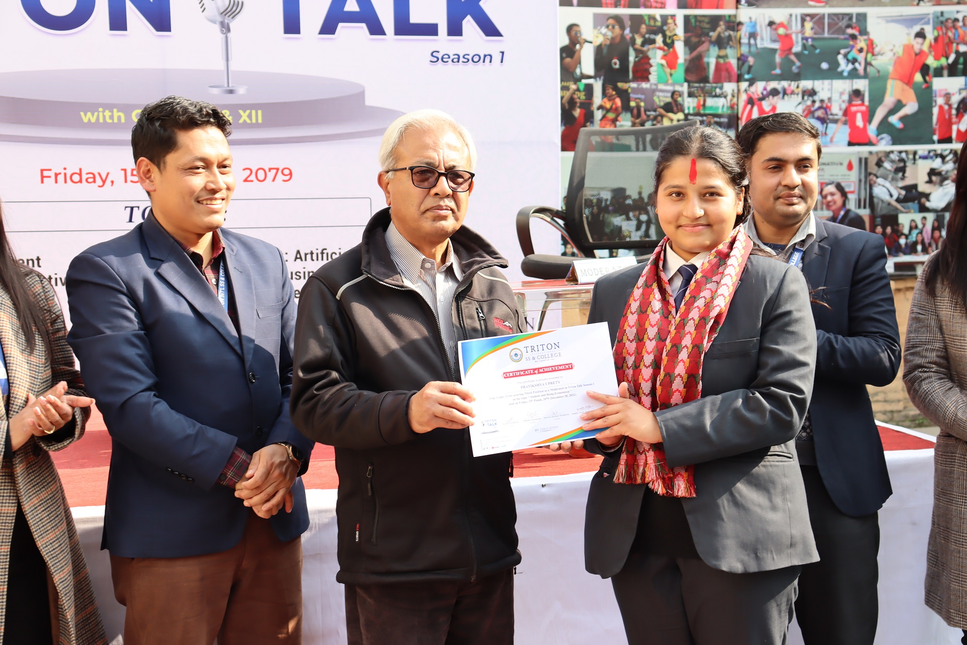 विद्यालयमा अध्ययनरत कक्षा ११, १२ तहका विद्यार्थीहरुलाई कक्षा कोठाको पठन पाठनको सैद्धान्तिक ज्ञानलाई व्यक्ति विकासमा देखाउने उद्धेश्यले यो कार्यक्रम गरिएको विद्यालयका ट्रिटन टक – सिजन १ कार्यक्रम व्यवस्थापक कमान सिहं आर।सि।ले बताए । विभिन्न विषय वस्तु समेटि ११ वटा शिर्षकमा उक्त कार्यक्रममा विद्यार्थीहरुले आ–आफ्नो धारणा राखेका थिए ।