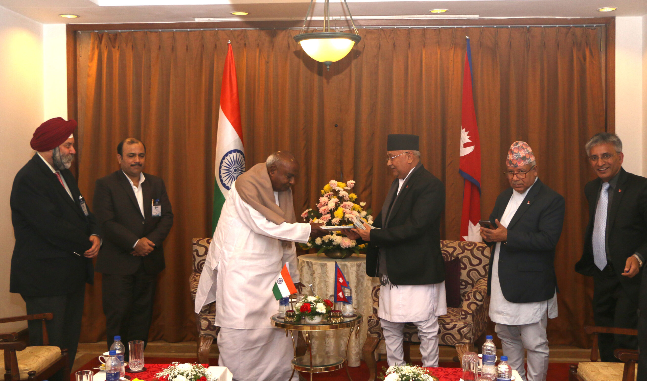 काठमाडौँ– प्रधानमन्त्री केपी शर्मा ओली र भारतका पूर्वप्रधानमन्त्री एचडी देवेगौडाबीच शिष्टाचार भेटवार्ता भएको छ ।
