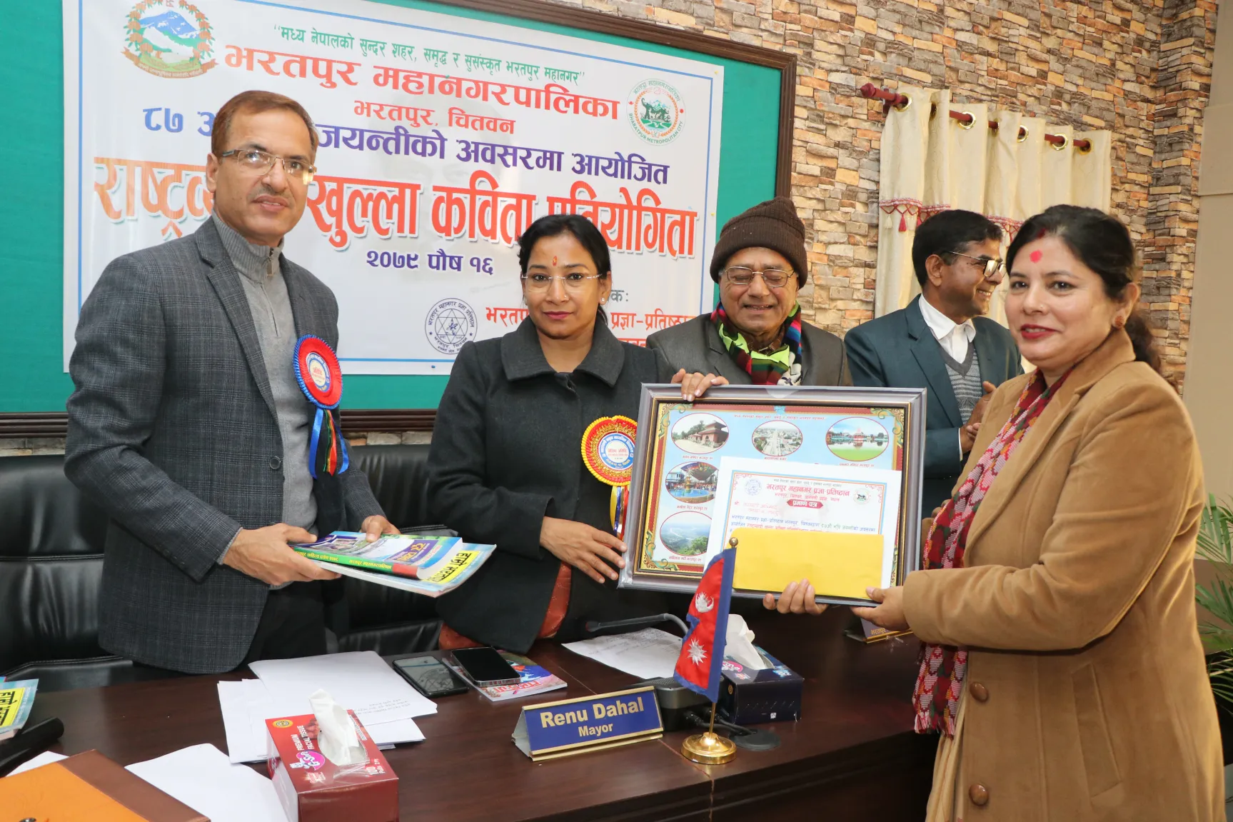 भरतपुर प्रज्ञा–प्रतिष्ठानको कुलपति रहेकी मेयर दाहालले कला साहित्यको क्षेत्रमा कमल चलाउनेलाई सानो भए पनि आर्थिक सहयोग प्रदान गरेर देशको छ वटा महानगरपालिकामध्ये भरतपुरले नयाँ कामको थालनी गरेको बताइन् । देशका ४० जिल्लाबाट एक सय १५ प्रतियोगी आफ्ना सिजर्नाका साथमा सहभागी भएका छन् ।