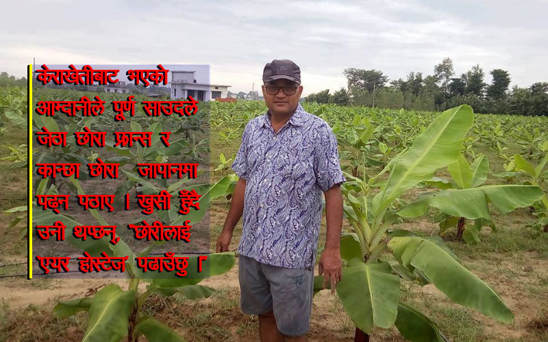 घर खर्च चलाउन गाह्रो हुदै थियो । दुई छोरा र छोरीलाई राम्रो स्कुल पढाउन सक्ने आर्थिक स्थिति थिएन । साँउदसँग अन्य कुनै विकल्प पनि थिएन । अन्य खेती किसानीबाट भन्दा केराखेती बाट केहि प्रगति र आर्थिक अवस्था सुधार हुने आशाका किरणहरु मनमनै पलाउथे उनका । नभन्दै एक बर्षको परिश्रम पछि कमाई राम्रो नै भयो । झन् उनको आत्मबल बढ्दै गयो । केरा खेतीलाई उनले एउटा लक्ष्य बनाए ।