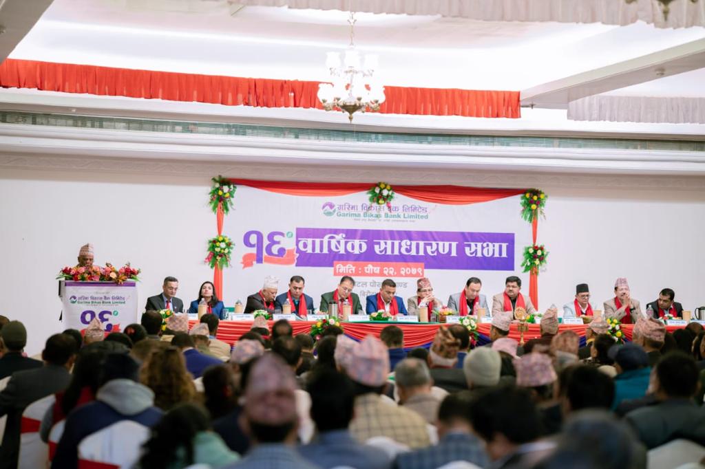 काठमाडौंको लाजिम्पाटमा केन्द्रीय कार्यालय रहेको गरिमा विकास बैंकको सोह्रौं वार्षिक साधारण सभा पोखरामा सम्पन्न भएको छ । सभामा आर्थिक बर्ष २०७८/७९ को वार्षिक प्रतिवेदन उपर छलफल गरी पारित गरिएको छ ।