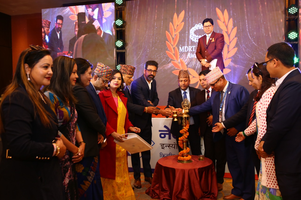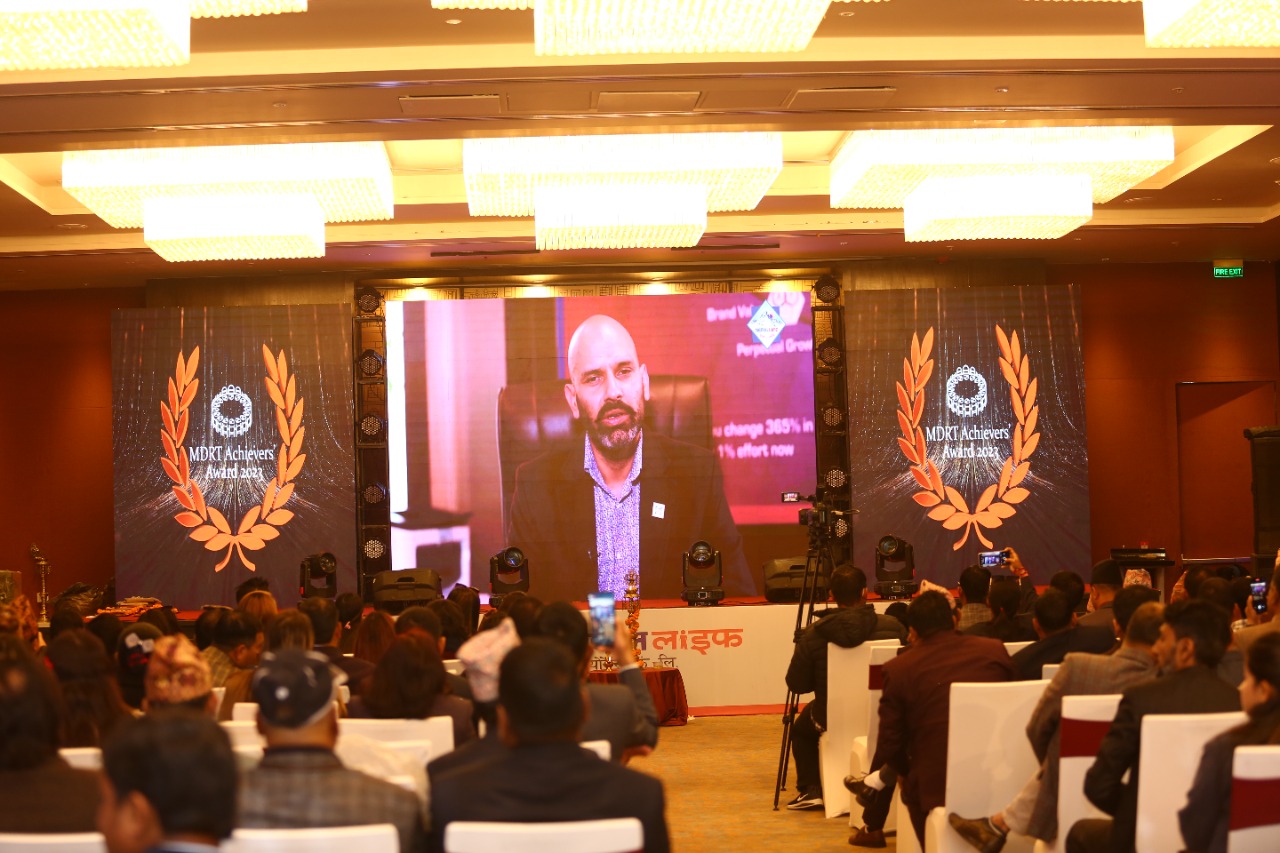 काठमाडौं । नेपालको सर्वाधिक विश्वासिलो जीवन बीमा कम्पनी नेपाल लाइफ इन्स्योरेन्स कम्पनीले आईतबार काठमाडौंको हायत प्लेसमा ‘एमडीआरटी’ अचिभर्स अवार्ड, २०२३ समारोह सम्पन्न गरेको छ । वर्ष सकिएको सात दिन भित्रै सन् २०२२ को जनवरी देखि डिसेम्बर अन्तिम सम्म रू ३७,९२,३०० प्रथम बीमा शुल्क सकलन गरी ‘एम।डी।आर।टी’ का लागि योग्य भएका २४३ जना अभिकर्तालाई सम्मानित गरिएको छ ।