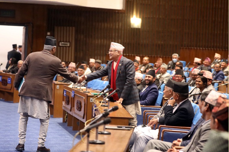 देउवाले ओली र ओलीले देउवालाई नछाड्ने अवस्थामा दुबैका लागि तुलनात्मक रुपमा प्रचण्ड नै प्रधानमन्त्री रहिरहनु सजिलो हुनसक्छ । त्यसैले प्रचण्डले असाधारण समर्थनमा पाउनुमा उनको भन्दा पनि देउवा–ओलीको राजनीतिक पासा कारक देखिन्छ ।
