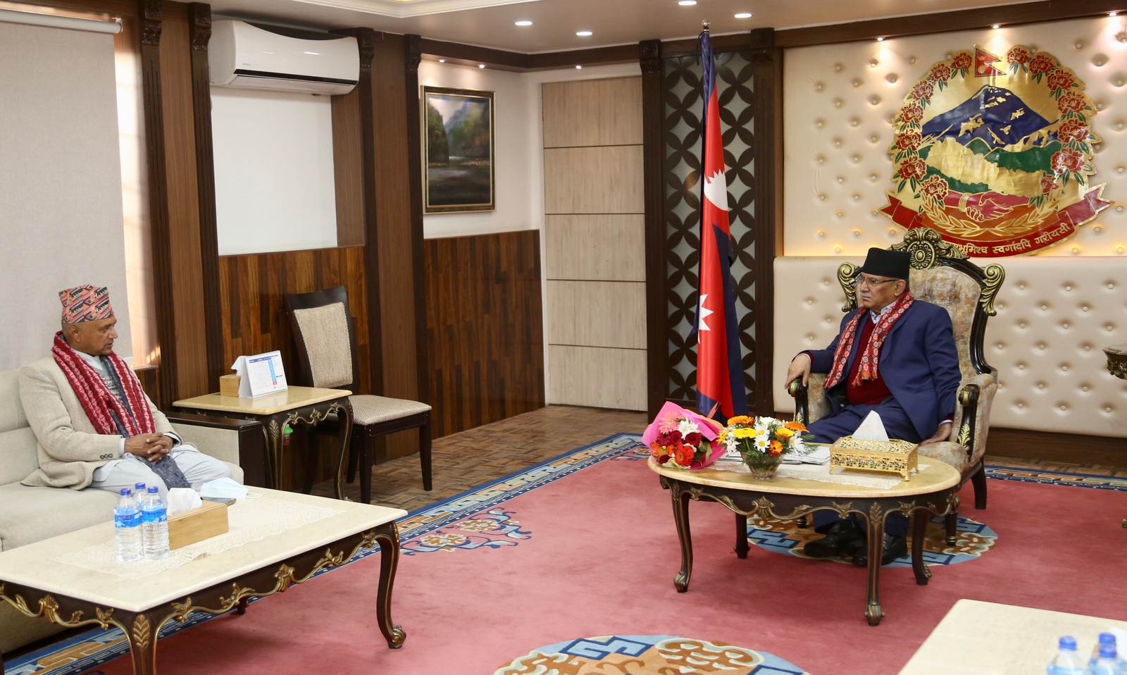 काठमाडौँ । प्रधानमन्त्री प्रचण्ड र गण्डकी प्रदेशका नववियुक्त मुख्यमन्त्री खगराज अधिकारीबीच भेटवार्ता भएको छ । प्रधानमन्त्री निवास बालुवाटारमा बुधबार बिहान प्रचण्ड र अधिकारीबीच भेटवार्ता भएको हो ।