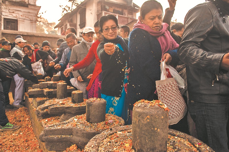 Kathmandu : Thousands of Hindu devotees from across the country have thronged in Pashupatinath temple and some other Hindu shrines from early morning today to pay homage to their near and dear ones, who died over the last one year, on the occasion of Bala Chaturdashi.