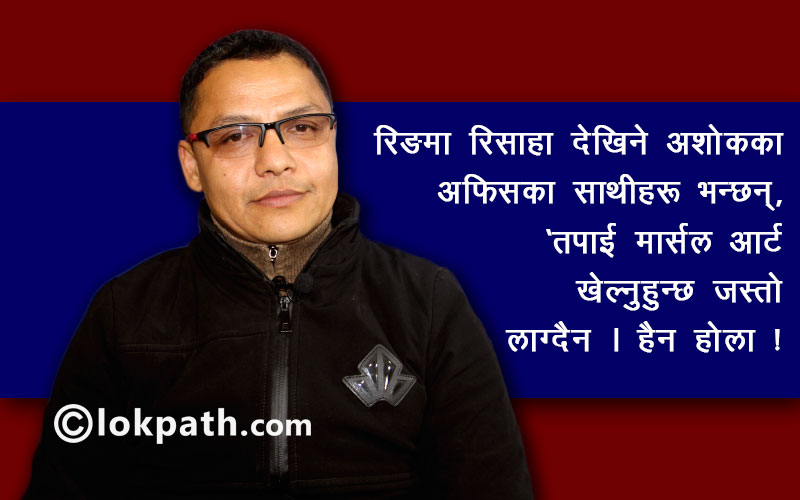 खेल र कर्मचारी जीवनलाई समानान्तर रुपमा अघि लग्न सफल नेपाल क्योकुशिन सेइशिन काइकान कराँते एसोसिएसन’का अध्यक्ष अशोक कुमार श्रेष्ठ सँग लोकपथकर्मी प्रेरणा तिमल्सिनाले गरेको कुराकानीको सम्पादित अंश प्रस्तुत गरिएको छ :