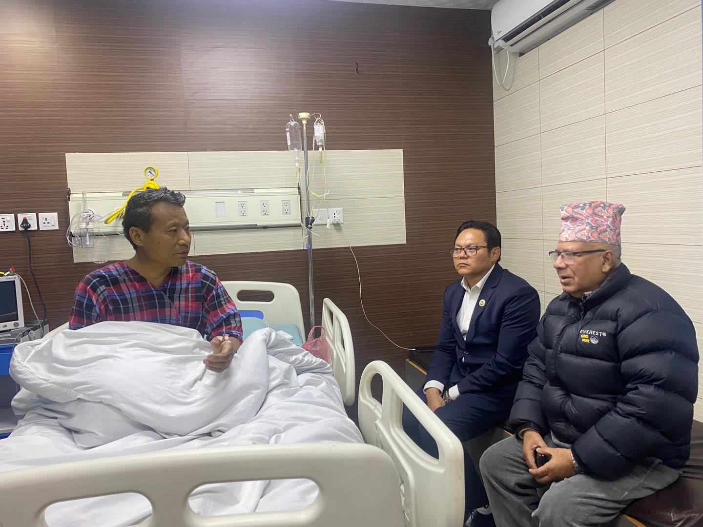 बुधबार दिउँसो मन्त्री किराती र पूर्वप्रधानमन्त्री नेपाल ललितपुरस्थित सुमेरु अस्पताल पुगेका हुन् ।