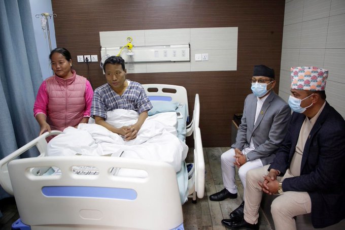 ललितपुरस्थित सुमेरु अस्पतालमा उपचाररत नेता पुनलाई मन्त्री गिरीले भेटी स्वास्थ्य अवस्थाबारे जानकारी लिँदै स्वास्थ्य लाभको कामना गरेका हुन् ।