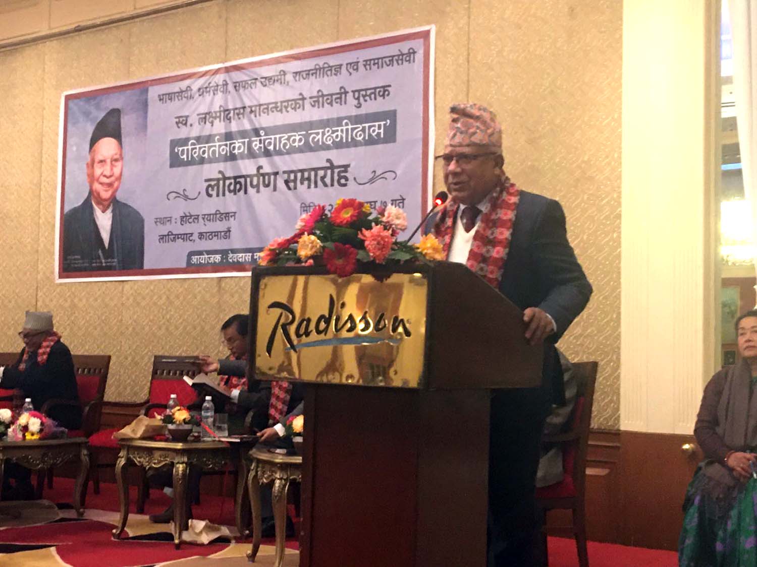 काठमाडौं । नेकपा (एकीकृत समाजवादी) का अध्यक्ष एवं पूर्वप्रधानमन्त्री माधवकुमार नेपालले बहुआयमिक व्यक्ति स्व लक्ष्मीदास मानन्धरको जीवन नयाँ पुस्ताका लागि प्रेरणाको स्रोत भएको बताएका छन् ।