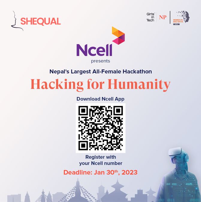 काठमाडौं । शिक्वल फाउन्डेसनले एनसेल आजियाटा लिमिटेडसँगको सहकार्यमा ‘ह्याकिंग फर ह्युम्यानिटी’ थिममा नेपालको सबैभन्दा ठूलो महिला ह्याकाथन कार्यक्रमको आयोजना गरेको छ ।
