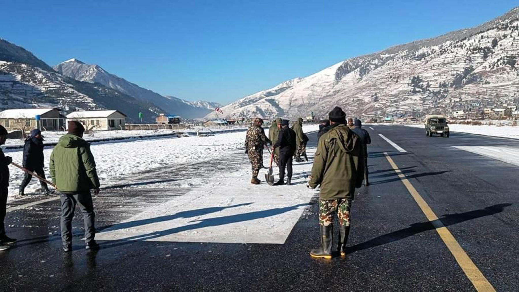 नेपाली सेना, नेपाल प्रहरी र सशस्त्र बलले जुम्ला विमानस्थलको धावनमार्गमा जमेको हिउँ हटाएपछि नेपालगञ्जबाट तारा र समिटले जुम्लाका लागि उडान गरेको नागरिक उड्डयन प्राधिकरण जुम्लाका निमित्त कार्यालय प्रमुख राजीव श्रेष्ठले जानकारी दिए ।