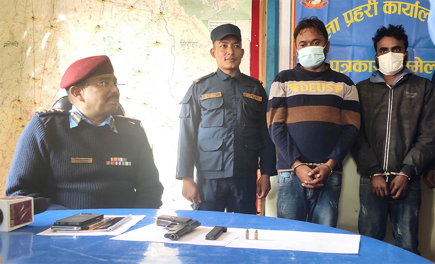 इकाका प्रहरी कार्यालय महेन्द्रनगर र जिल्ला प्रहरी कार्यालय धनुषाको संयुक्त प्रहरी टोलीले गत माघ १२ गते साँझ विशेष सूचनाको आधारमा खानतलासी गर्दा उनीहरुलाई पेस्तोलसहित पक्राउ गरी थप अनुसन्धानको कामलाई अघि बढाइएको जिल्ला प्रहरी कार्यालय धुनषाका प्रमुख एसपी विश्वराज खड्काले बताए ।