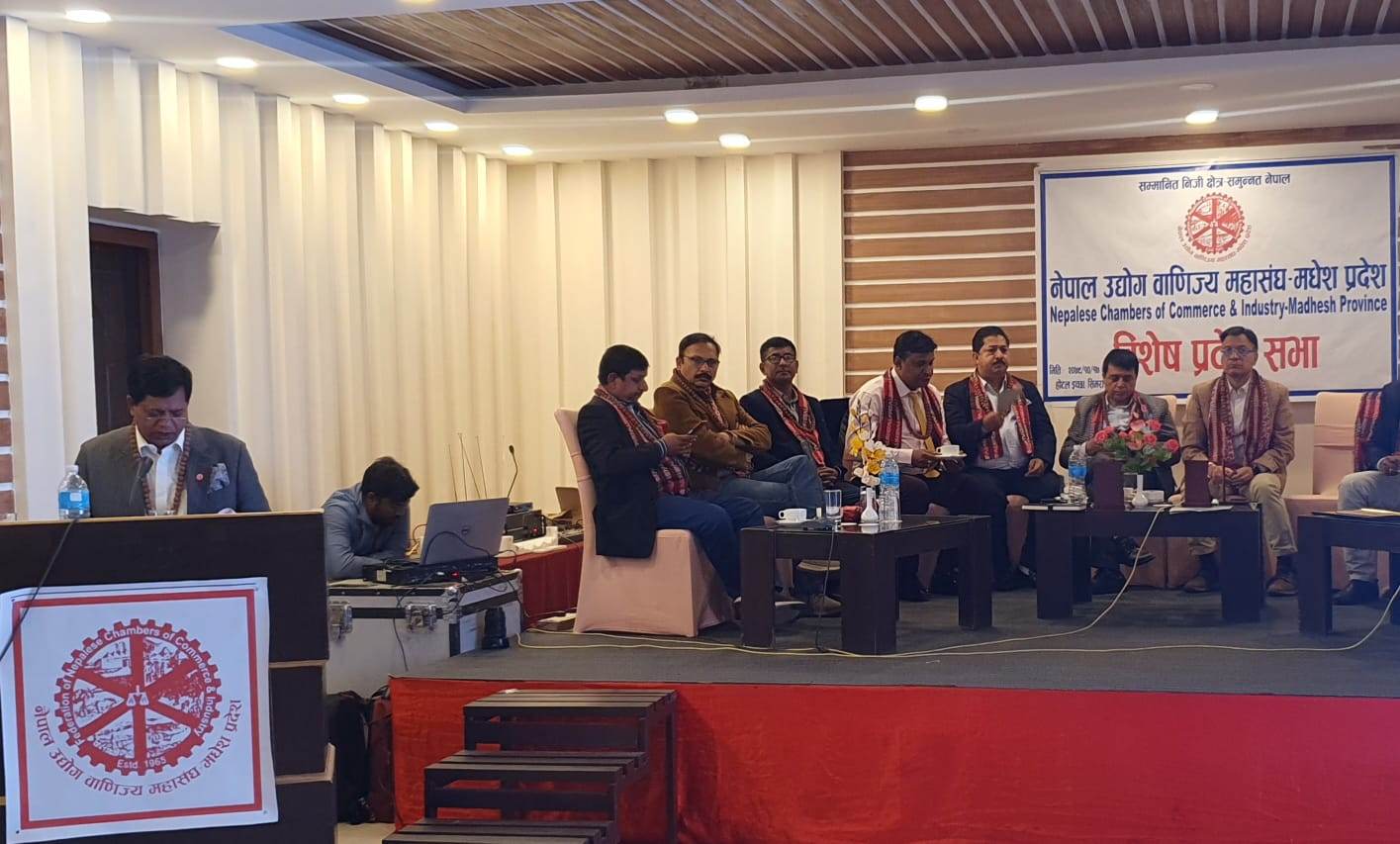 सिमरामा मंगलबार भएको मधेश प्रदेश उद्योग वाणिज्य महासंघको विशेष साधारण सभामा बोल्दै संघईले अर्थतन्त्रको गति ठीक दिशातर्फ नरहेको विषयमा सबैले हेक्का राख्न जरुरी भएको बताए ।