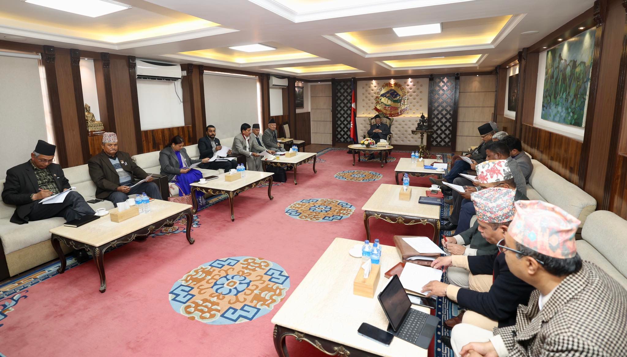 काठमाडौं । प्रधानमन्त्री पुष्पकमल दाहाल ‘प्रचण्ड’ सँग संसदमा प्रतिनिधित्व गर्ने प्रमुख दलका सचेतक, मुख्यसचिव, कानुनमन्त्री, कानुनसचिव लगायतसँग छलफल शुरु भएको छ ।