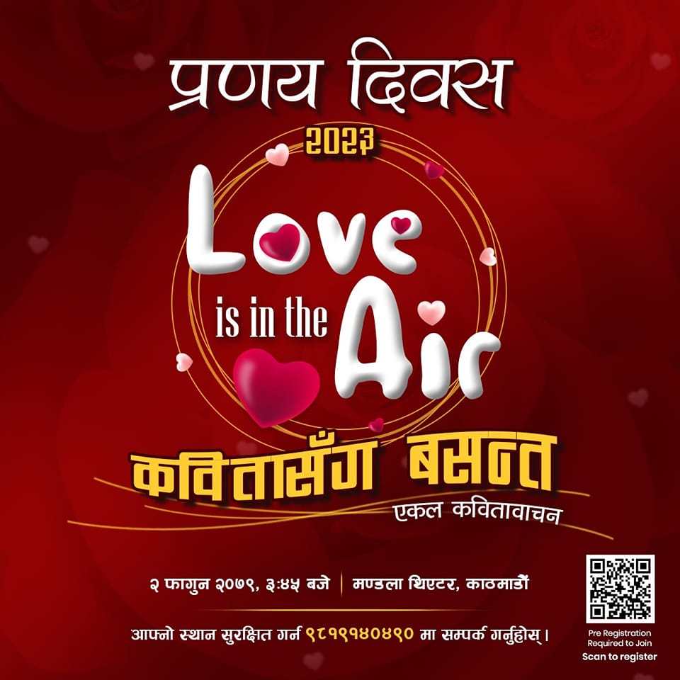 यो वर्षको भ्यालेन्टाइन डे(प्रणय दिवस)को अवसर पारी फेब्रुअरी १४(फागुन २ गते) चौधरीको विशेष कविता वाचन कार्यक्रम आयोजना हुने भएको हो ।