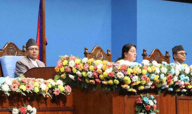 उनले भनिन्, ‘राष्ट्रपति भण्डारीले स्वास्थ्य क्षेत्रमा लगानी बढाएपनि अझै पनि सुत्केरी महिलाहरुको उपचारको अभावमा ज्यान जाने अवस्था कायमै रहेको उल्लेख गर्दै चिन्ता समेत व्यक्त गर्नु भयो । उहाँले भन्नु भयो, संविधान र कानुनले प्रत्याभूत गरेको विषयहरु पनि हामीले पूर्ण रुपमा अवलम्बन गर्न अझै बाँकि छ । हामीले जुन सोचका साथ लैगिक विकासका अवधारणा अघि सारेका थियौं । त्यो परिणाम प्राप्त भएको छ, छैन ? सो को यथार्थ समिक्षा गरी अघि बढनु पर्दछ भन्ने मलाई लाग्दछ । विगतमा भन्दा विद्यालयमा छात्राको उपस्थिति बढेको छ । तर तिनले विद्यालय शिक्षा पूरा गरेका छन कि छैनन ? यसैगरी महिला स्वास्थ्यमा समेत प्रशस्त लगानी गरिएको छ । तर रोगप्रतिरोधात्मक क्षमता विकास गर्न हाम्रा प्रयास पर्याप्त छन वा छैनन ? विचारणीय छ । अहिले पनि दूर्गम क्षेत्रमा सुत्केरी हुन नसकेर वा सुत्केरी भएपछिको सामान्य उपचारको अभावमा अकालमा ज्यान गुमाउनुपर्ने अवस्था रहेको छ । किन अहिले पनि महिलाहरु विभिन्न किसिमका सामाजिक कुरीतिको शिकार भईरहेका छन ? घरेलु हिंसा, यौन हिंसा र अन्य प्रकारका हिंसाबाट महिलाहरुले अझै पनि किन सुरक्षित महशुस गर्न सकिरहेका छैनन् ? यी प्रश्नहरुको उत्तर खोजिनु जरुरी छ । हाम्रा नीति तथा कार्यक्रम राम्रा हुँदाहुँदै पनि यीनको प्रभावकारी कार्यान्वयन हुन नसकेको कुरा यसमा पुनर्विचार गर्न आवश्यक देख्दछु ।’