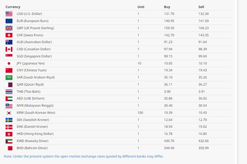 यस्तै युरो एकको खरिददर १४० रुपैयाँ ९५ पैसा रहेको बिक्रीदर १६० रुपैयाँ २३ पैसा रहेको छ । यसैगरी पाउण्ड एकको खरिददर १५९ रुपैयाँ ५० पैसा र बिक्रीदर १६० रुपैयाँ २३ पैसा रहेको छ भने कतारी रियाल एकको खरिददर ३६ रुपैयाँ ११ पैसा र बिक्रीदर ३६ रुपैयाँ २७ पैसा रहेको बैंकले जनाएको छ ।