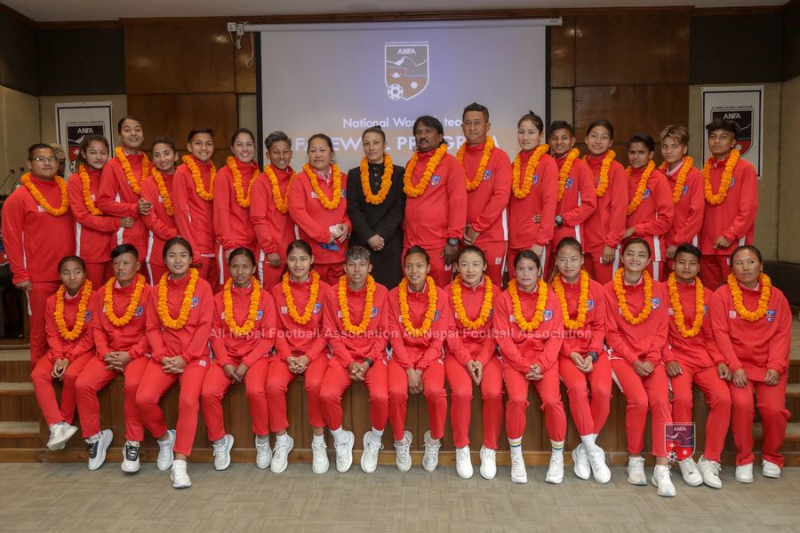 काठमाडौं । अखिल नेपाल फुटबल संघ (एन्फा) ले नेपाली राष्ट्रिय महिला फुटबल टोलीलाई बिदाइ गरेको छ । एन्फाले आइतबार आफ्नो कम्प्लेक्समा भारतसँग मैत्रीपूर्ण खेल खेल्ने जान लागेको महिला फुटबल टोलीलाई बिदाइ गरेको हो ।