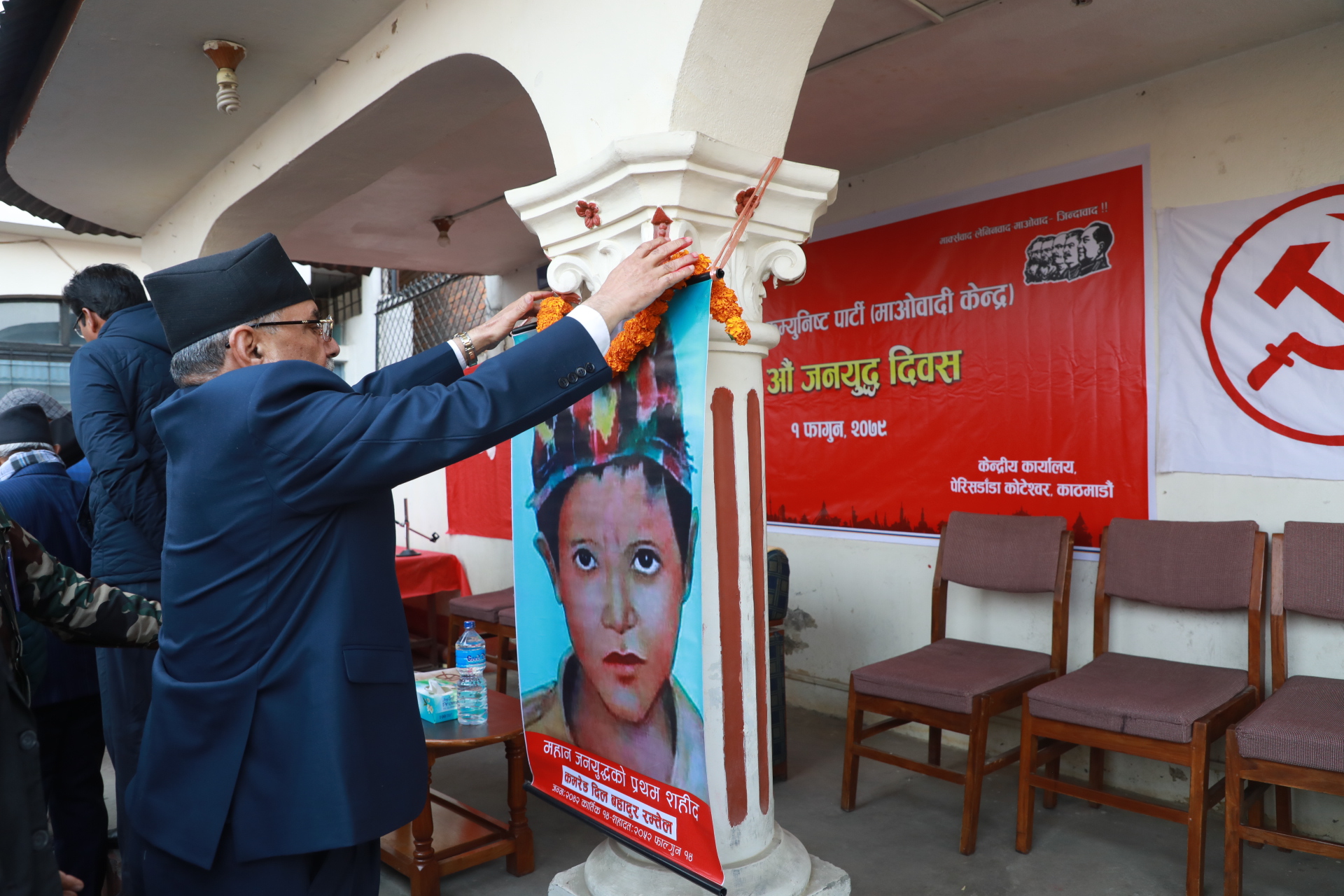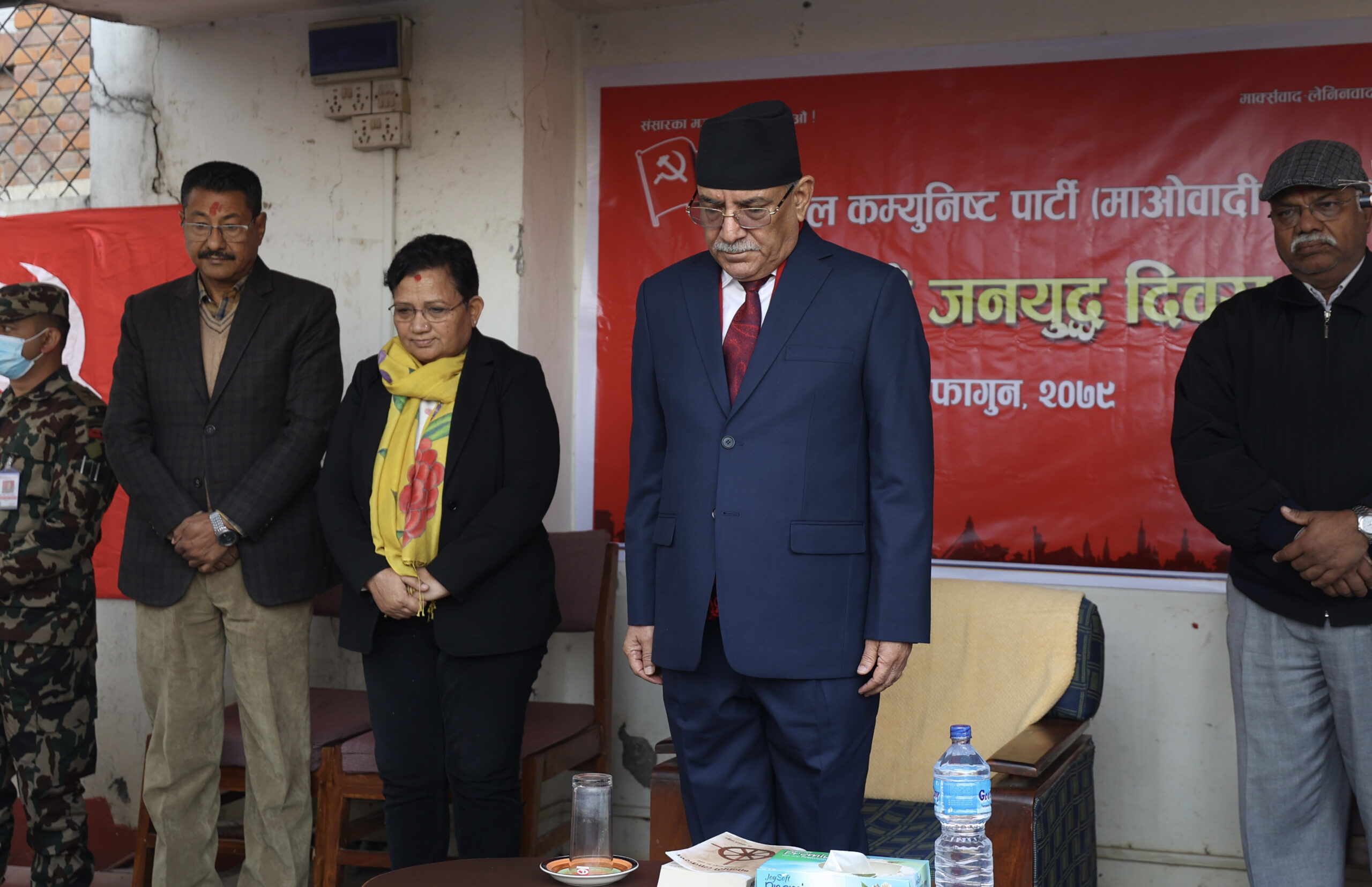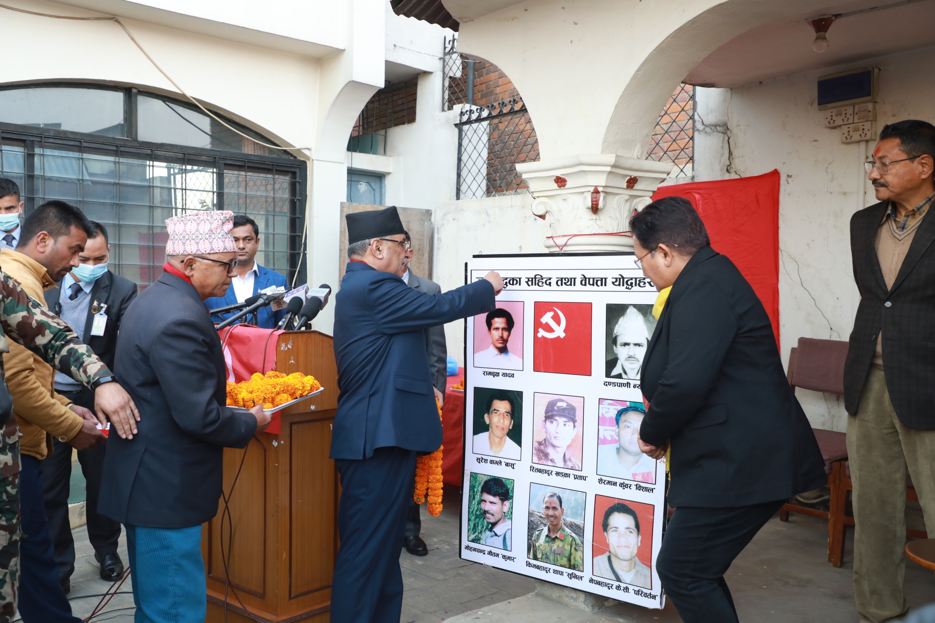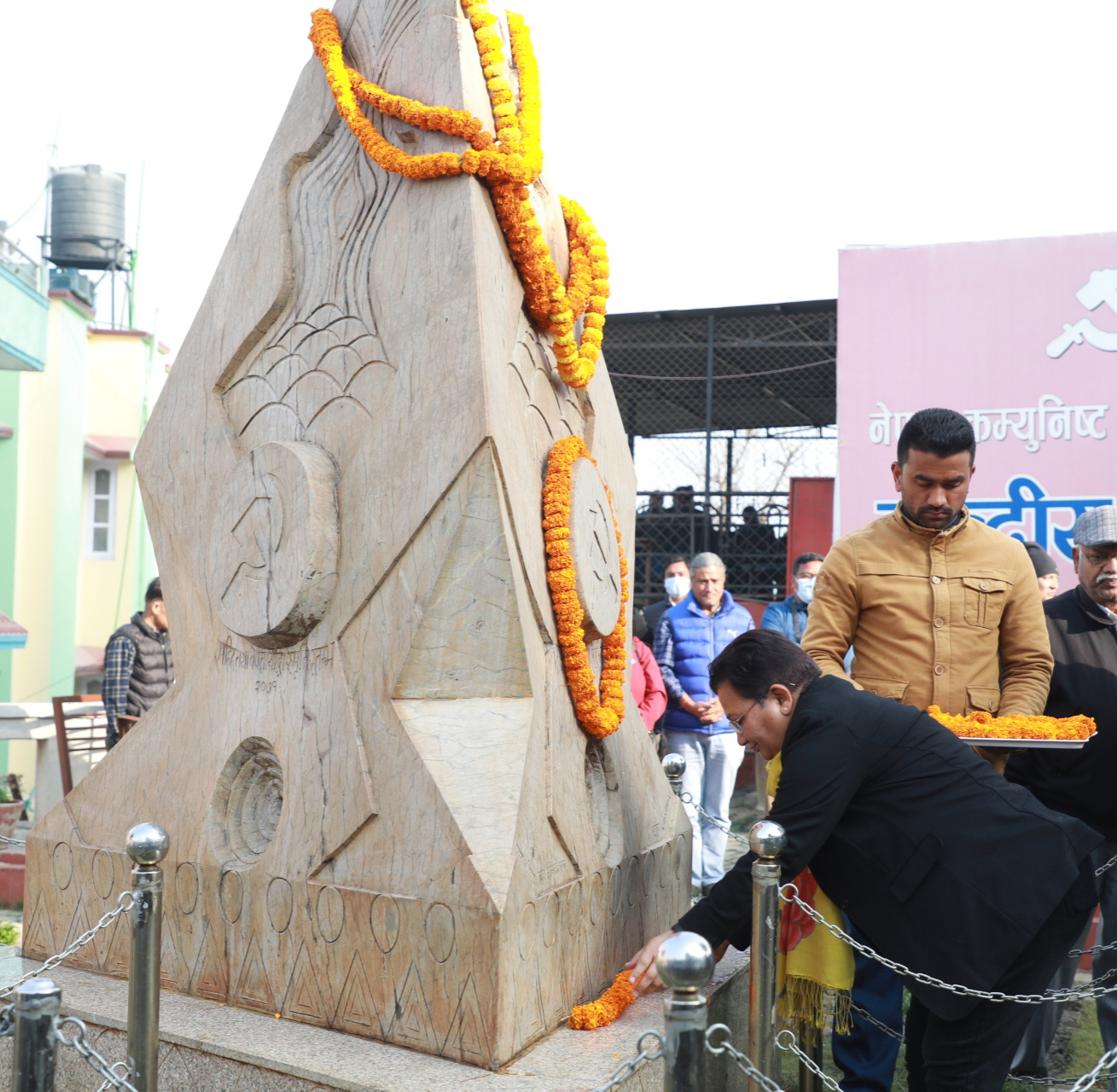 पेरिसडाँडामा आयोजित कार्यक्रममा पार्टी अध्यक्ष तथा प्रधानमन्त्री पुष्पकमल दाहाल ‘प्रचण्ड’ ले शहीदको तस्बिरमा फूलमाला अर्पण गर्दै सम्मान प्रकट गरेका थिए ।