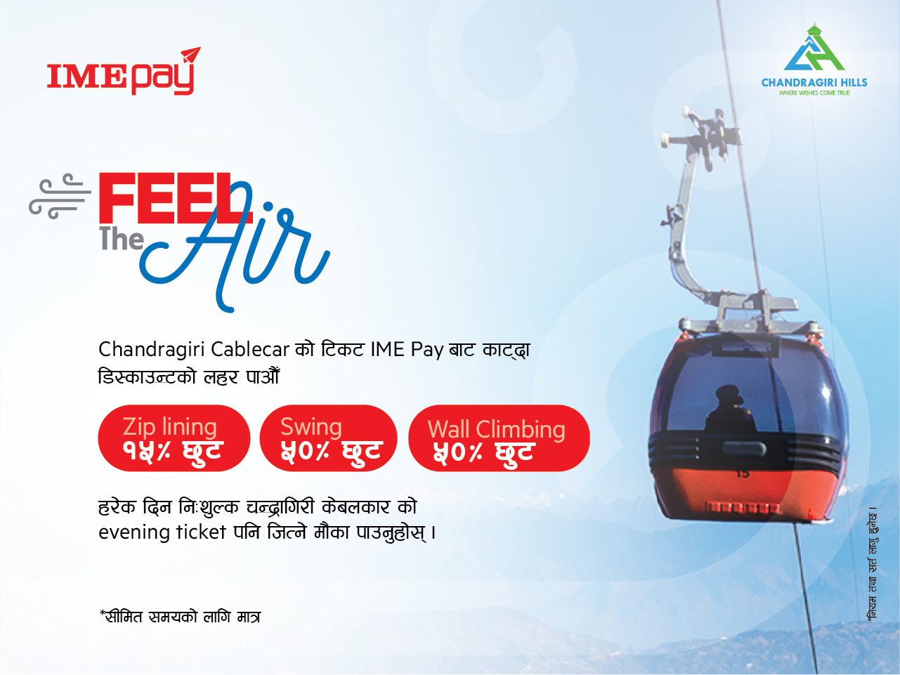 काठमाडौं । आइएमई पे र चन्द्रागिरि हिल्सवीच फील द एयर नामक अफर सार्वजनिक गरिएको छ ।