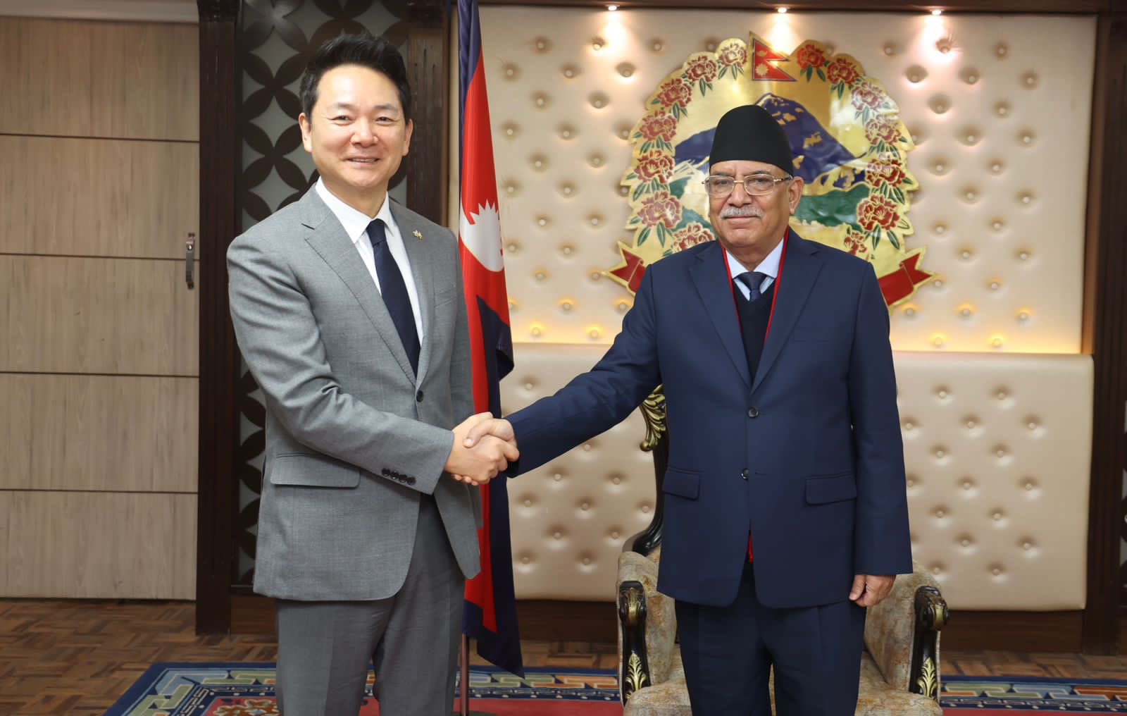 काठमाडौं । प्रधानमन्त्री पुष्पकमल दाहाल ‘प्रचण्ड’ले दक्षिण कोरियाका राष्ट्रपतिका विशेष दूत सुङ मिन जङसहितको आठ जनाको टोलीसँग शिष्टाचार भेटवार्ता गरेका छन् ।