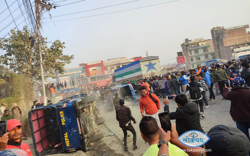 ट्राफिक प्रहरीले लगाएको जरिवानाको विरोध गर्दै यातायात व्यवसायीले गरेको प्रदर्शनले उग्र रुप लिँदा प्रहरी वृत्त, बालाजुका दुई गाडीमा तोडफोड र आगजनी भएको थियो । अरु सार्वजनिक सम्पत्तिमा पनि क्षति पुगेको थियो । माछापोखरीमा जम्मा भएको समूहले प्रहरीको दुई वटा गाडीमा आगजनी गरेका थिए ।