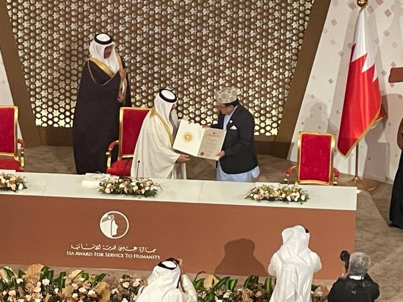 उनले ३० बर्षभन्दा बढी समय ‘मानवताका लागि सेवा’ गरेका कारण बहराइनका राजा हमाद बिन इसा अल खालिफाले प्रतिष्ठित अवार्ड, रुकम र सम्मानपत्र सहित सम्मान दिएका हुन् ।