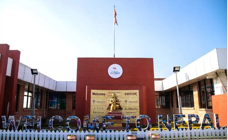 काठमाडौं । जहाजबाट ओर्लेपछि आगमनतर्फ लम्किँदै गर्दा टर्मिनल छिर्ने ढोकैनेर ठूलो अक्षरमा ‘वेलकम टु नेपाल’ लेखिएको छ जसलाई नेपालको कला, संस्कृति झल्कने कागजको फ्रेमले सजाइएको छ ।