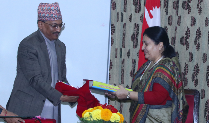 सोमबार राष्ट्रपति कार्यालय शीतलनिवासमा आयोजित बिशेष समारोहका बीच आयोगका प्रमुख आयुक्त नवीनकुमार घिमिरेले संविधानको धारा २९४ बमोजिम आयोगको प्रतिवेदन राष्ट्रपयित विद्यादेवी भण्डारीसमक्ष पेश गरेका हुन् ।
