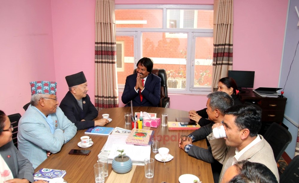 काठमाडौं । यही फागुन २५ गते हुन लागेको राष्ट्रपति निर्वाचनमा नेकपा (एमाले) बाट उम्मेदवार रहेका सुवासचन्द्र नेम्वाङले जनमत पार्टीका अध्यक्ष सीके राउतसँग भेट गरेका छन् ।