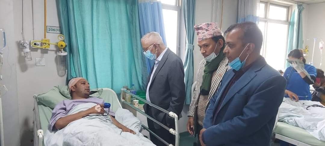 बिहीबार त्रिभुवन विश्वविद्यालयमा दुई समूहबीच झडप हुँदा घाइते भएका नेविसंघका पूर्व कोषाध्यक्ष शिव रिमाललाई भेट्न स्टार हस्पिटल पुगेका हुन् ।