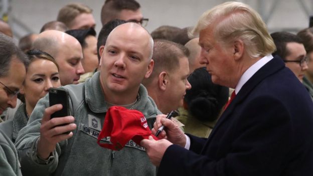 त्यस क्रममा सैनिकहरुले राष्ट्रपति ट्रम्पसँग सेल्फी पनि खिचेका थिए । इराकमा अहिले पनि अमेरिकाका करिव ५ हजार सैनिक कार्यरत छन् । उनीहरुले इराक सरकारलाई इस्लामिक स्टेटविरुद्धको लडाइँमा सहयोग गरिरहेका छन् ।